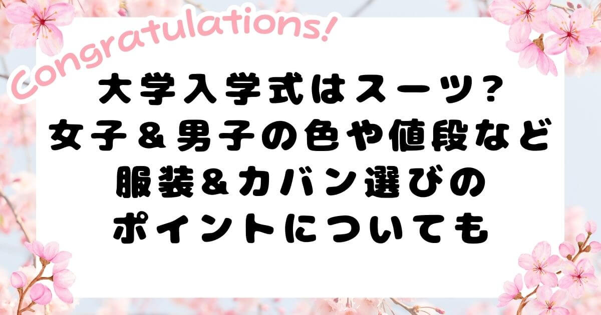 大学入学式は、大学によって服装のドレスコードが指定されていない場合もありますが、多くの学生がスーツで参加しています。式はフォーマルな場面ですから、きちんとした服装を選ぶことが失礼のない印象になります。
