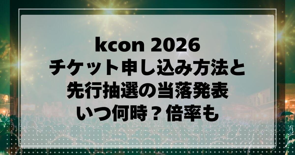 そこで今回は、KCON JAPAN 2026のチケット申し込み方法の流れ、先行抽選の当落発表のタイミングや時間帯の傾向、さらに過去データからの倍率の予想までまとめてみました。