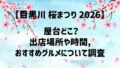 - 靖国神社:桜の標本木で有名。露店や参道の雰囲気も華やか。