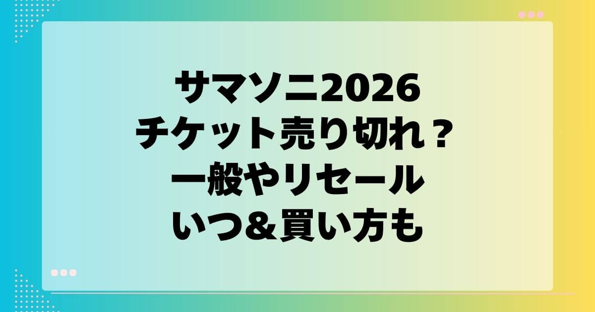 サマソニ2026、チケット関連の告知がどんどん出てきて、「もう売り切れ?」「一般発売はまだ?」「リセールってあるの?」と気になっている人も多いと思います。
