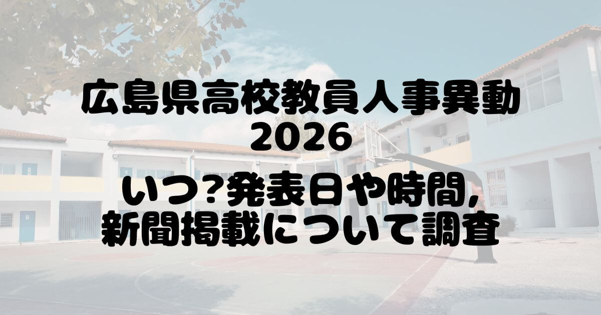 「広島県の高校教員人事異動2026はいつ発表されるの?」「何時に公開される?新聞にも載るの?」と気になっている方も多いですよね。毎年チェックしている方でも、発表日や時間は分かりにくく、見逃してしまうこともあります。