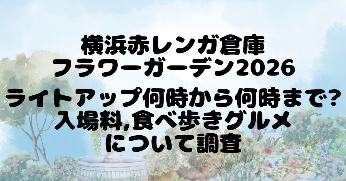 横浜赤レンガ倉庫「フラワーガーデン2026」は、ライトアップは17:30~22:00、入場料は無料で、キッチンカーの食べ歩きグルメは11:00~21:00を中心に楽しめるイベントです。